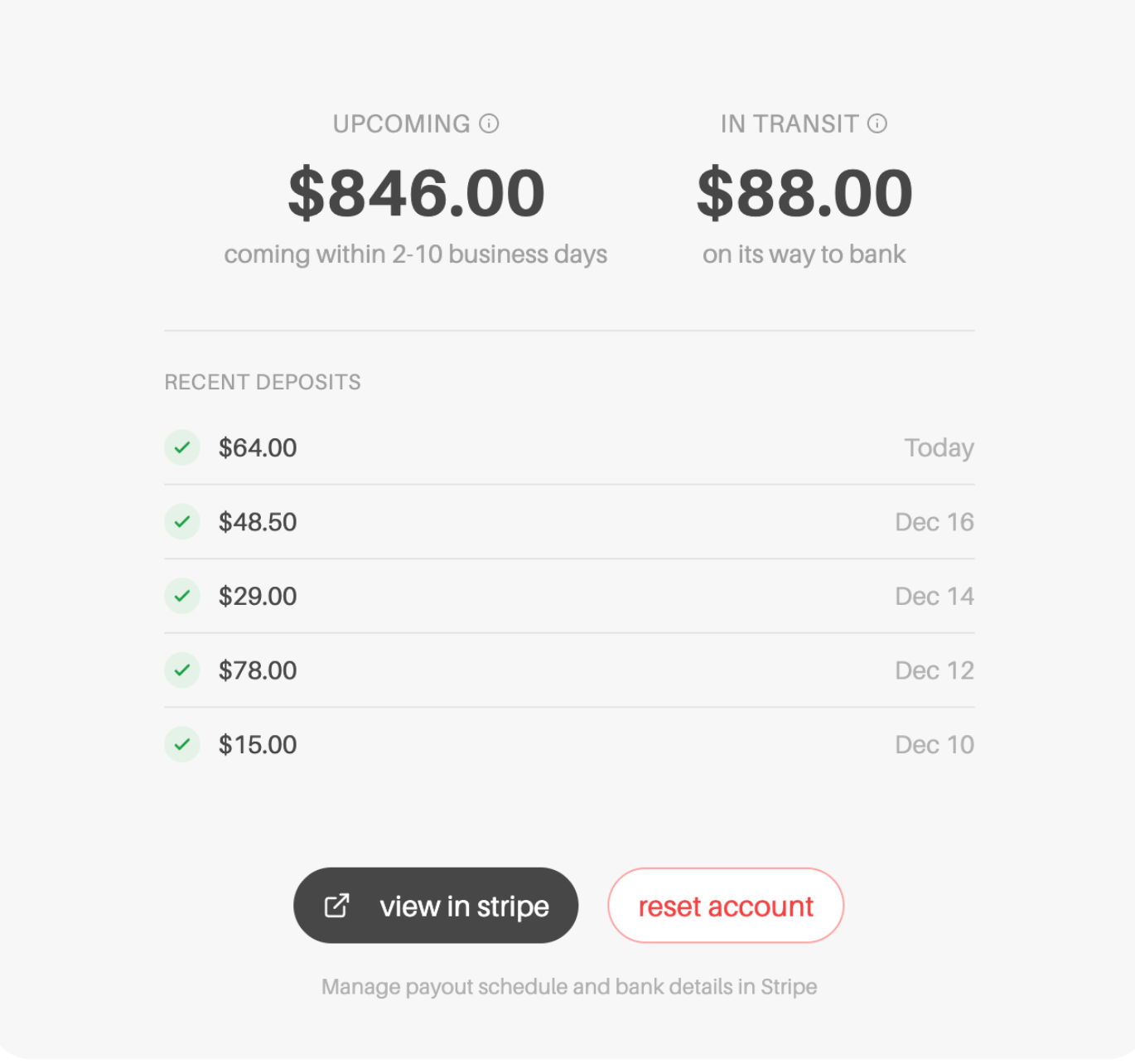 Your Bank Settings now show exactly where your earnings are in the payout process. Plus, you'll see a history of recent deposits so you can track when payments land.
